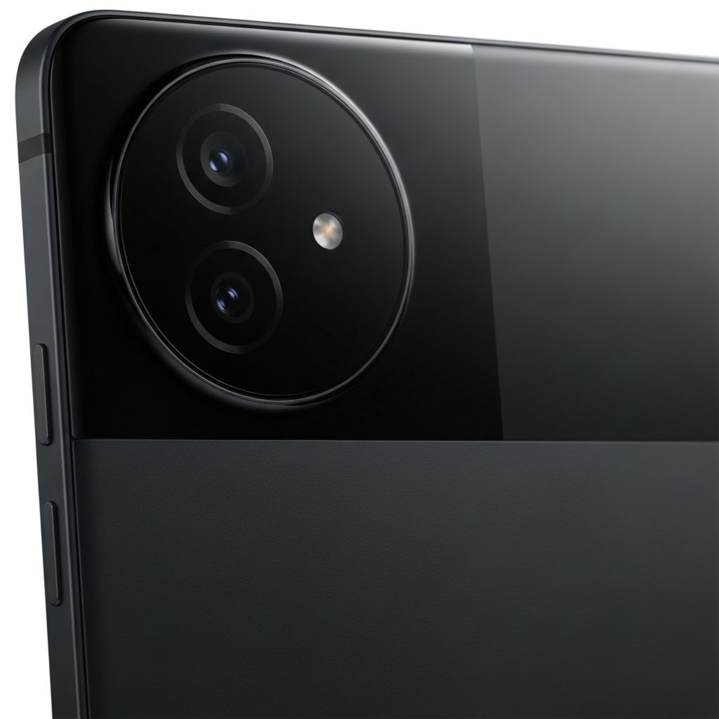 OnePlus Pad Go 2 camera module and the matte texture of the Shadow Black back panel.